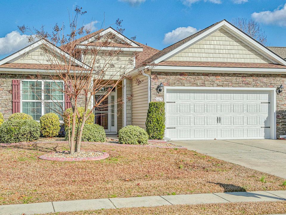 Rarely used 2nd home for seller on a quiet Cul de Sac street. This 3 br/2ba home has water views from almost every room. Enter into a large foyer with wood flooring throughout great room and kitchen. Features a split floor plan and a nook for home office. Relax and enjoy your water views on the all glass screened porch with roll out jalousie windows, making it a full time room throughout the changing seasons. Great backyard with extended patio and grilling area. Spacious kitchen with numerous cherry wood cabinets, double oven, cooktop range, under the counter lighting and solid surface counter top. Garage is set up for organization featuring shelving units, work sink, work shop and built in shop vac. New roof in 2023...Located close to college, outlets, Hwy 90 and downtown Conway. Furniture negotiable....HOA has a free storage area for RV, boat , etc
