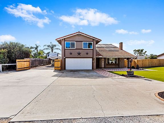 THIS IS THE ONE... calling all RV, BOAT & CAR enthusiasts ... stunning rambler located in the highly sought after community of Jeffries Ranch... FULLY PAID SOLAR... 4 bed / 3 bath / 2,564 sq.ft / 15,500 sq.ft lot... beautifully upgraded... open floorpan, living & dining room w/vaulted ceilings & slider doors... extra windows... 2 fireplaces... gourmet kitchen w/extra cabinet space... 1 bed / 1 bath downstairs... large primary bedroom w/double door entry... custom built bath & closet... extra large upstairs family room / movie room / bonus space... and wait til u see the backyard... entertainers delight... sparkling pool & spa... fire pit...3 pergolas, bar, sitting area w/still more room to spare... 2 car spacious garage... side yard can fit an RV, boat and truck... property if fully fenced... LOW TAXES, no HOA... located near the 394 acre Guajome Regional Park... paved bike trail extends all the way to the Oceanside beaches, walking trails, close to shopping and hwy 76... this home is a must see!!!