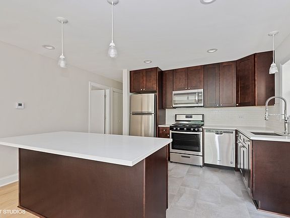 Welcome to your stunning, sun-drenched 3-bedroom, 1 bathroom flat that effortlessly blends modern style with cozy charm! This beautifully updated home features gleaming hardwood floors throughout, creating a warm and inviting atmosphere from room to room. The spacious living area is bathed in natural light, making it the perfect space to relax or entertain. The heart of the home is the kitchen, complete with sleek stainless steel appliances, an island with breakfast bar, ideal for casual dining or enjoying your morning coffee. With two spacious bedrooms and updated bathrooms, this flat offers the perfect balance of comfort and contemporary flair. Full amenity building with FREE shared laundry in the basement, plenty of FREE shared storage and a shared treadmill available for use.