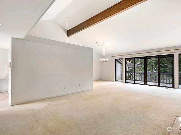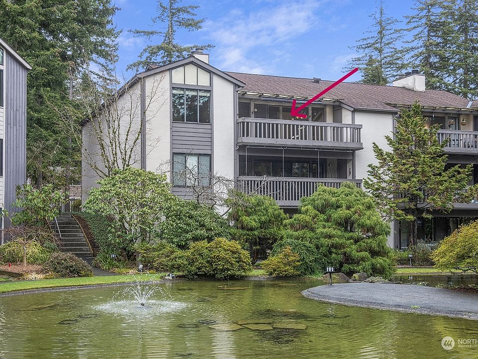 Unparalleled opportunity to own a top floor unit at highly coveted Noble Firs! Arguably the best view & location on the quiet side of the complex overlooking the pond & park-like grounds from a bird's eye view. Unleash your creativity or relish in the vintage flair of this spacious home w/ high vaulted ceilings, exposed beams, a built-in wet bar (plumbed for a sink) & flex-space/nook off the kitchen. The primary suite is a true oasis with vaulted ceilings, walk-in closet & dressing area. 2nd bed w/ convenient built-in office space. Carport + add'l deeded parking space, bonus storage unit, deck views & more! Renowned for its winding paths & tranquil ponds on 6+ picturesque acres w/clubhouse, pool, etc! Strong HOA & mgmt. Rental cap NOT met!