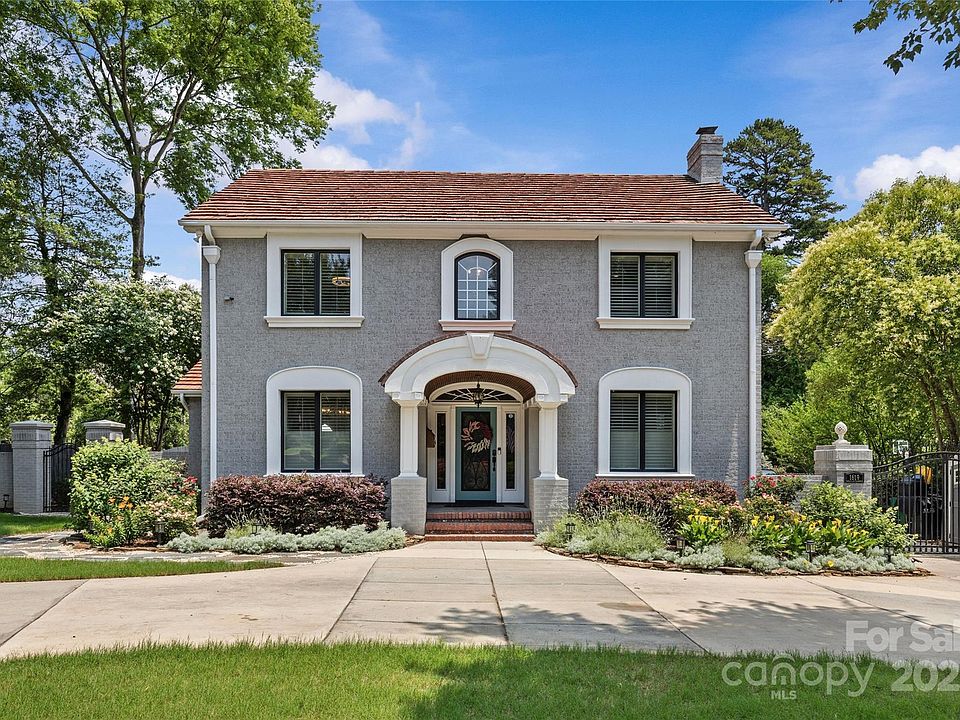 Stately 4 bed, 4.5 bath brick home in Eastover, one of Charlotte's most sought-after neighborhoods. This classic two-story plus basement offers effortless indoor-outdoor living. The main level features an open-concept living room and den with dual stone fireplaces, a gourmet kitchen with richly-stained cabinetry and a center island, and both formal and casual dining areas. The spacious primary suite includes two walk-in closets and a grand en-suite bathroom with separate vanities and a soaking tub. 3 secondary bedrooms, 2 full bathrooms, and a work-from-home space round out the second level. The finished basement adds versatile flex space and has a full bathroom. Hardwood floors, mudroom with built-ins, and a 2-car attached garage enhance the home's functionality. The outdoor space truly shines thanks to the private, gated backyard with multiple seating areas, a sparkling pool with water features, a hot tub and gas fire pit. All just minutes from dining, shops, green spaces, and more!