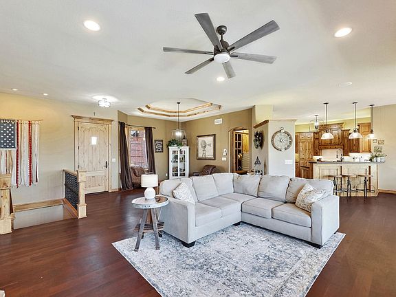 Luxury living at its best. Come see this beautiful residence located in the coveted Montana Hills subdivision in Andover, KS. Main area boast updated kitchen with new countertops and upgraded appliances. Dining area and living room have view of tree lined backyard. Basement covered deck had entertainment or family gatherings in mind. Full kitchen setup with wine cellar and full sized bar top. Sellers have done many improvements over the recent years that include 7 person hot tub, added full wired home surveillance tour, new HVAC system, 19 x 36 salt water pool that is heated, deck jets and multi-function LED lights in updated kitchen and bathrooms. Don't miss out. Home shows like a gem!