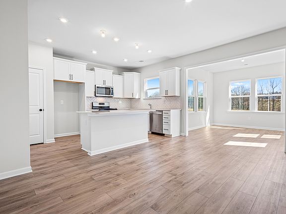 This brand new, light-filled and airy home offers an inviting open layout designed for both everyday living and entertaining. The living room features a cozy fireplace and flows seamlessly into the upgraded kitchen, complete with quartz countertops, white cabinetry, a spacious island, ample counter space, and a sunny breakfast area perfect for casual dining.