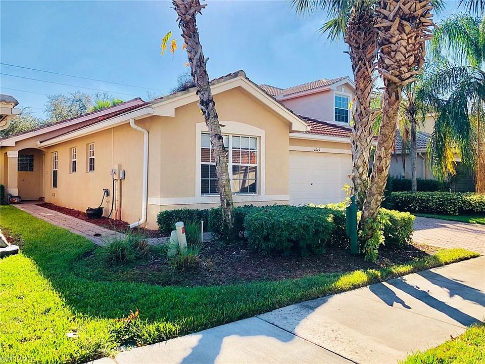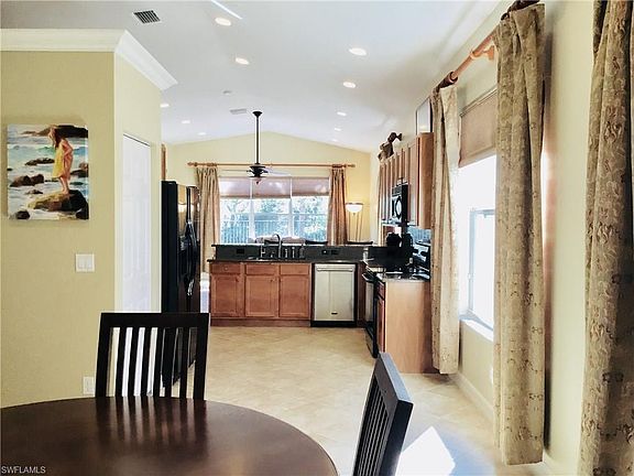 Saturnia Lakes stunner! Make this your paradise! This beautiful 3 bedrooms plus a den, 2 bath home is the lowest price in Saturnia Lakes! The kitchen features beautiful wood cabinets, granite counters that extend up creating a seamless backsplash, and a new water treatment system. The home offers vaulted ceilings, tile through main living areas with wood floors in bedrooms, crown molding, central vac., and new honeycomb blinds. Relax in your fenced in backyard oasis with beautiful pavers to keep the kids or pups safe. Saturnia Lakes offers a resort style pool, lap pool, kiddie pool, internet cafe, massage rooms, tennis and basketball courts, playground, fitness room and so much more! This beautiful home is within walking distance to Laurel Oaks Elementary & Gulf Coast High School, nearby a brand new Publix opening soon, and minutes to I-75. Call and schedule your appointment today so you can own a piece of paradise in beautiful Naples Florida!!
