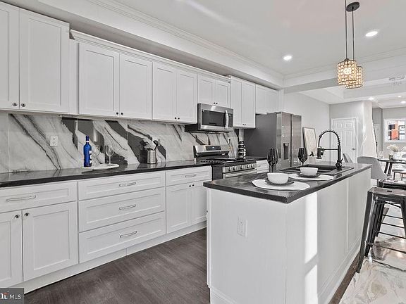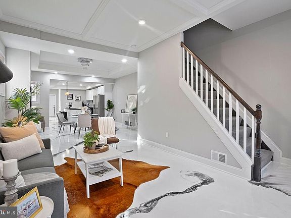 Welcome to 1619 West Lexington ave in the Heart of Baltimore Maryland! This fully renovated 4 Bedroom 4 Full bath home is a must see! As you walk in your in awe of the Beautiful custom epoxy floors which are sure to make your jaw drop! Just beyond the dining room with alluring chandelier your spacious kitchen awaits! Brand new custom epoxy countertops offset the stainless steel and white cabinets perfectly! Large island with double sinks is the ideal entertaining space! Just as you make your way past the kitchen you will find the entrance to your main floor full bath with stand up shower, vertical tile and pedestal sink. Making your way upstairs to the second and third floor are 4 Generously sized bedrooms and three gorgeous full bathrooms, One with marble shower tile and granite sink, the second has marble tile with accent vertical tile. The third has marble tile, Matching countertop and large Jacuzzi tub! All boasting gleaming custom epoxy flooring! Outdoor patio has space and shade for all your summertime bbq's! Come see today!