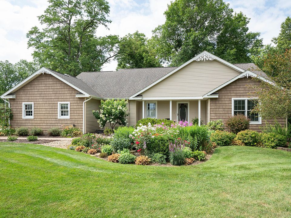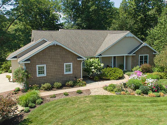 Beautifully updated home in Woodbrook Estates that sits on a nearly 1-acre lot with frontage on Flowerfield Creek. Gorgeous curb appeal will welcome you home. Excellent floor plan that offer stunning views of this private setting. Step inside to the large great room featuring vaulted ceilings and an attractive gas-log fireplace. Renovated kitchen with quartz counters and stainless appliances. Spacious master suite highlights the bedrooms and offers a large walk in closet. 2nd bedroom, additional full bath and laundry round out the main floor living. Lower level walkout is filled with potential and currently offers a craft room, rec room, and workshop, along with plenty of daylight. Enjoy this peaceful setting from the new composite deck, 3 season room, or the lower level patio with hot tub. Numerous upgrades include newer roof, furnace, A/C, kitchen, bathrooms, and decor. Excellent location only minutes from Olde Mill Golf Course, downtown Schoolcraft and easy access to major roads.
