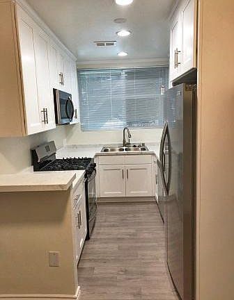 Holiday Move in SPECIAL! Preferential rate ! Only $2450.00 per month. Regularly $3000.00 per month. This makes a discount savings of $6,600.00 over one year! One year lease. Flexible move in terms. $3000.00 Security Deposit can be paid in two $1500.00 payments. Cats and Small dog ( non barking ) 15 lbs and under, OK with Pet Deposit Fabulous, Bright, Private Upper Corner End Unit. No one above you ! Completely Remodeled from the studs up. Brand new everything from ceiling to laminate floor literally! Brand new: windows, flooring, window blinds, closet, AC units, Heat unit, bathroom with 2 sink vanity, fabulous kitchen with an abundant amount of solid maple cabinets in the kitchen and dining area, Quartz countertops, stainless steel dishwasher, microwave, double sink, garbage disposal unit, gas range ,French door fridge with ice-maker and water dispenser, recessed lighting. Covered carport parking with storage unit. A MUST SEE UNIT!! The Pacific Palisades is an affluent residential neighborhood tucked between the Santa Monica Mountains and the Pacific Ocean. Temescal Gateway Park offers hiking trails with sweeping coastline views, and the sandy Will Rogers State Beach provides access to a 22-mile beachfront bike path. Landmarks include the Getty Villa museum showcasing Greek and Roman antiquities, and the mid-century modern Eames House. The apartment is within walking distance ( 10 minutes) to world class shopping at the brand new recently opened ( 2019) Palisades Village, numerous fabulous restaurants, Temescal Gateway Park ,Will Rogers State Beach, Palisades Recreational Center ( public tennis courts, indoor basketball courts, park) public library, Erewhon, Gelsons, Ralph s and Vons grocery stores, Starbucks , Coffee Bean & Tea Leaf, unique boutiques, barbershop, Dry Bar, numerous hair and nail salons, dry cleaners, car wash, gas stations, florist, Domino s Pizza, Palisades High School has a brand new Aquatic facility for Pacific Palisades residents and the list goes on Everything you need minutes away! Owner Pays water, sewer and trash