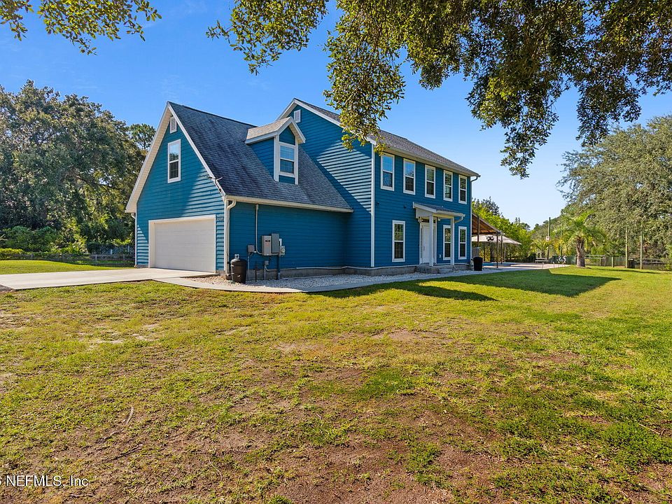 Welcome to Black Hammock Island-a nature lover's retreat and boaters paradise. Situated on over half an acre and boasting 55 ft of tidal creek frontage, this property offers quick and easy access to the River, Intracoastal and the Atlantic ocean! Step into this beautifully updated, custom built waterfront home where modern upgrades meet serene views. Recently refreshed from top to bottom, this 5 bed/3 bath POOL home features a stunning new kitchen with sleek finishes including quartz countertops and tasteful backsplash, stainless steel appliances, eat in dining plus breakfast bar, and a large walk in pantry. The lower level was built for entertaining featuring a cozy family room, a dedicated office with french doors, plus an addt'l bedroom that would make the perfect mother in law suite or space for overnight guests. Upstairs you will be greeted by 4 additional bedrooms with walk in closets- including the primary suite that offers gorgeous views of Nassau River. Step outside into your backyard oasis, fish right off your dock or choose to launch your boat or canoe. Splash around in your salt water pool, or soak in your hot tub, this home offers it all! With the new flooring and fresh paint throughout, renovated baths, convenience of upstairs and downstairs laundry, and a whole house generator, don't miss this rare opportunity to own a turn key waterfront property with all of the upgrades already done for you-just move in and start living the Black Hammock lifestyle you've been dreaming of. Enjoy the Friday night food trucks, community events such as holiday hayrides, golf cart poker runs, and so much more. NO HOA. Amenities include a community center with pickle ball courts, tennis courts, playground and softball fields with a short commute to grocery stores, restaurants and shopping, highways, schools, hospitals, naval bases and JIA. Don't miss out, schedule your showing today!