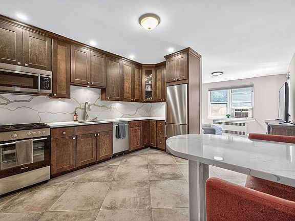 Beautifully renovated one bedroom, one bathroom which is conveniently located on the 1st floor. Walk in, eat-in kitchen with walnut-colored cabinets and matching stone waterfall style backsplash countertops, all stainless-steel appliances. Unit is tiled with 24x24 porcelain floor tile. Bathroom has hexagon floor tile which flows into the stand-up shower; stand up shower has an accent stone bench seating. Bathroom walls contain articulate ceramic tile. The bedroom two large closets with closet organizers within. Additional closet space is found inside the kitchen and hallway. 2 AC window units are included as well. Water view and bridge view from the apartment! Building offers a doorman, 24-hour security, package room, outdoor pool offering views of the Throgs Neck Bridge, waterfront promenade, fishing dock, community room and playground. Located blocks to the following local buses (Q15) to Main St & Express Bus (QM2) to Manhattan, close to the Cross Island Parkway and Bayside LIRR. Blocks from 154th St Shopping including North Shore Farms, CVS, Banking, Restaurant, Tony's Deli and more! Dogs allowed up to 40lbs. Subletting allowed for only 2 Years after living for 3 years!
