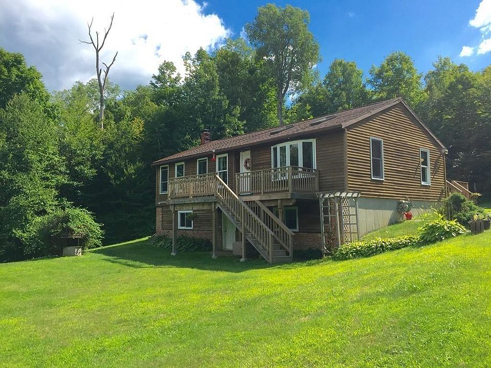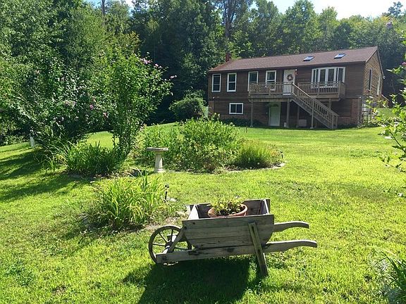 This inviting country residence is nestled on 9 acres of both wooded and open land. The house comes complete with two living rooms, a welcoming kitchen/dining area with vaulted ceilings and newer sky lights, good size bedrooms, a Master bedroom with it's own bathroom, additional bonus room in the basement, and retains the value of peaceful and private living. There have been many recent improvements including Roof, skylights, windows, flooring wood furnace and so much more. Step outside on the refinished front or rear decks and enjoy the sights and sounds of nature while overlooking the lovely yard and garden space. There is plenty of additional storage outside with a cute garden shed and another large storage shed. Schedule your private showing of this lovingly cared for home Today!