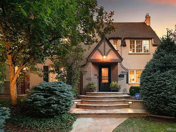 Welcome to this timeless 1930 Hilltop Tudor, rich in architectural character and set on a beautiful tree-lined street just one block from Cranmer Park. Situated on a generous 10,300 square foot lot, this 4,000+ sq. ft. home offers 5 bedrooms and 4 baths, blending original charm with thoughtful updates. Inside, every room has its own unique details — from graceful arches to wrought iron railings all make this home special. The expanded and updated layout is ideal for entertaining, with a sun-filled kitchen featuring hardwood floors, a large island, and open connection to the dining room with views of lush foliage. The living and family rooms open to the professionally landscaped backyard, complete with covered patio, built-in BBQ, firepit, iron fencing, and flagstone accents — an inviting space for gathering. Upstairs, the primary suite has two walk-in closets and a stunning new 5-piece bath with Classentino Porcelain finishes and a walk-in shower. Three additional bedrooms, a full bath, and laundry complete the second floor. The finished basement offers a re-carpeted guest suite with full bath, bonus room, and storage. A 2-car attached garage connects through a mudroom for everyday convenience. Recent upgrades include: a brand-new luxury primary bath, new Primary fireplace, custom radiator covers throughout, mini-split AC on the main level, updated lighting inside and out, fresh paint, new basement carpet, stainless refrigerator, hardscaping, and outdoor awning. The location is unbeatable — just moments to Cranmer Park’s stunning sunsets, close to Graland Country Day and Steck Elementary, Robinson Park, and neighborhood favorites like Park Burger and High Point Creamery. Close to Cherry Creek for world-class dining and shopping. This is a rare Hilltop sanctuary that perfectly combines history, character, and modern comfort.