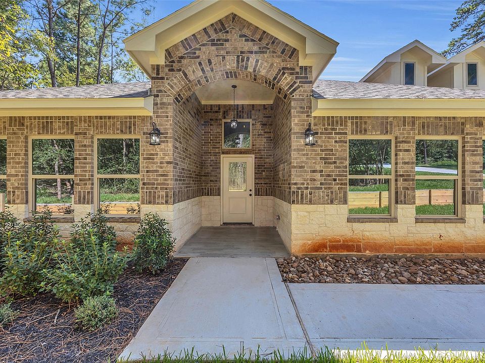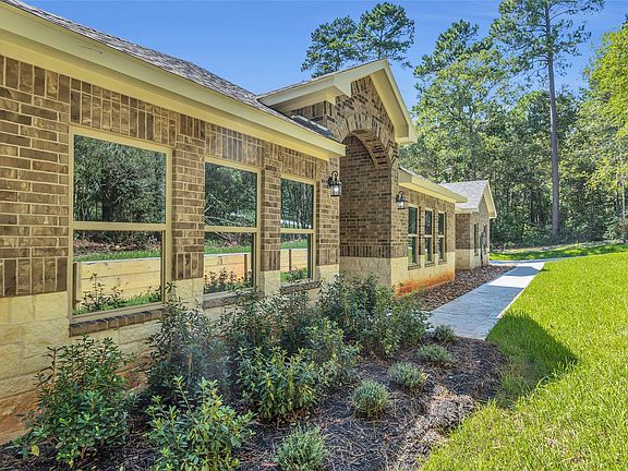 New 3233 square foot brick and stone one story home on 1.6 Acres in Texas Grand Ranch. Bright open concept with 2 large primary suites, 2 other large bedrooms with connecting bath and 1/2 bath. Gas and woodburning fireplace. Gas hookups for a possible outdoor kitchen. Sprinkler system is included. Quality construction with interior wall insulation for better sound, custom built cabinets & drawers throughout, including closets. All wood look tile on all flooring, high ceilings, crown molding. Check out the attachments for all the builder upgrades and specs. Great location just minutes from 1-45, New Waverly, and 15 minutes from Huntsville or Conroe and 20 from The Woodlands.