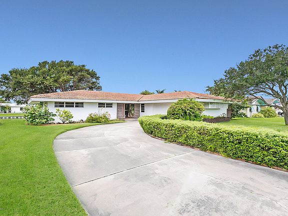 Don't miss this mid-century three bedroom two bathroom canal home just minutes from the beach! This one owner home exudes classic style! The formal living room has the original built-in wooden shelving and features, as well as a floor-to-ceiling slider out to the back porch. Filled with natural light, the family room also has a slider out to the back porch. The spacious kitchen has an electric range, built-in oven, and quality wood cabinets. White tile throughout entire home. Interior laundry room with abundant storage space. Spacious master bedroom has several closets and bathroom with shower and two sinks. The guest bathroom charms with the original tile! Large screened porch looks out over navigable canal. Easy access to Banana River and just minutes to the beach!