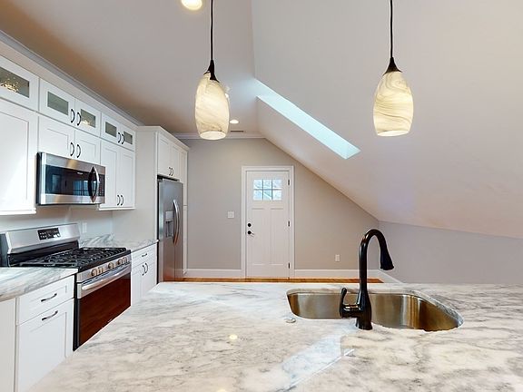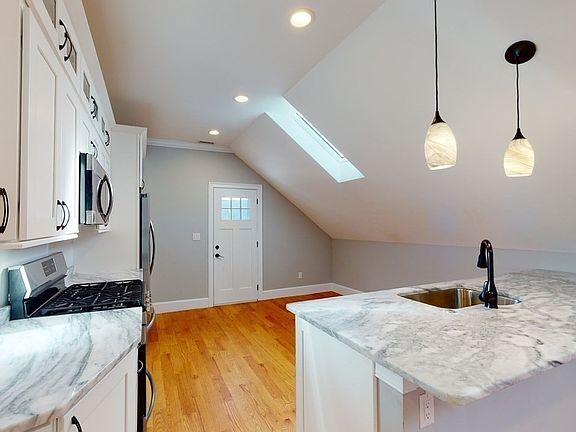 Available 12/1! Nestled off the street and just minutes to the commuter rail, a vibrant downtown and Salem Common, this sun-splashed 2 bed 2 bath penthouse offers a quiet retreat yet has everything you need at your fingertips! An expansive open floor plan gleams with natural light from three skylights while providing plenty of space for both living and dining. The chef's kitchen is anchored by a three-person marble peninsula and comes with a full complement of stainless steel appliances and ample cabinet space. A king-sized primary suite offers excellent closet space, electric fireplace and en-suite bath with double vanity. The queen-sized second bedroom works perfectly as a home office or guest bedroom, and the oversized common bath enjoys modern finishes. Two parking spaces included along with in-unit laundry, central air and extra basement storage. Tenant to pay first month and one month security deposit. Don't miss this gem in Salem!
