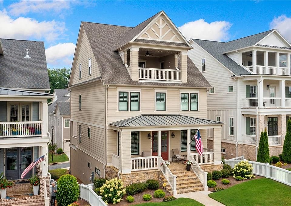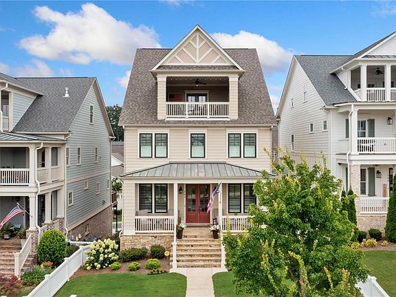 Experience the lifestyle you have dreamed about in South On Main – Downtown Woodstock’s Premier Community. Welcome to an exceptional opportunity to live in the heart of Downtown Woodstock’s most sought-after neighborhood—South On Main. Nestled on a premier lot, this beautifully crafted four-story luxury home offers refined living at every level, complete with 5 bedrooms, 4.5 baths, a private elevator, and designer upgrades throughout. Step inside and discover a home bathed in natural light, where expansive windows, plantation shutters and an ideal orientation make every room feel bright and inviting. The main level is thoughtfully designed for both gracious entertaining and comfortable everyday living, featuring a formal dining room with upgraded trim, a welcoming sitting/office room with custom French doors, and an open-concept living space with upgraded lighting and custom finishes. The beautiful family room features built-ins on either side of the fireplace. At the heart of it all lies the chef’s kitchen—a true culinary masterpiece. Outfitted with custom cabinetry, quartz countertops, a Thermador dual-fuel convection oven, and a generous center island, this space is sure to inspire your inner gourmet. Step outside to enjoy dining on the deck or unwind with a drink on the covered porch—perfect for morning coffee or sunset cocktails. Upstairs, the primary suite is a private sanctuary, showcasing elegant wainscoting, a spa-inspired ensuite bath with a soaking tub, double vanity, and an oversized walk-in, custom closet. Two additional bedrooms share a stylish Jack & Jill bathroom, and the spacious laundry room with a barn door—complete with a sink—adds everyday ease. The top-level is your personal retreat in the sky, featuring a fourth bedroom, full bath, and a generous bonus living area that opens to a Sky Terrace with panoramic views of the community garden and surrounding neighborhood. The terrace level brings even more versatility with a home office or media room, plus a flex space perfect for a guest suite, 5th bedroom or workout space with its own full bath. Completing this luxurious home is a 3-car garage, mudroom, irrigation system, and fully fenced yard! And perhaps best of all? You’re just a short stroll or golf cart ride away from Downtown Woodstock’s award-winning restaurants, boutiques, breweries, parks, and community events. This is more than a home—it’s a lifestyle. Don’t miss your chance to own one of the most feature-rich properties in South On Main.