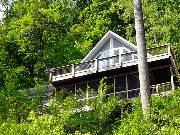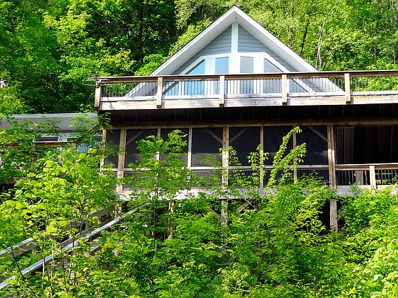 The Eagles Nest perched high atop a cliff with beautiful views of pristine Watauga Lake!! Gated for total privacy. This 1 bedroom w/ loft and plenty of bonus rooms is a must to see. Talk about social distancing!! Concrete driveway all way to the top!! Beautifully built contemporary gem with dramatic windows to take in the views! Granite and stainless kitchen. Billiard room / hot tub / plenty of outside living space and lake frontage for your private dock...This home would make a great vacation rental!!! ''1980 Flowage Easement'' Buyer/Buyer's agent to verify all information.