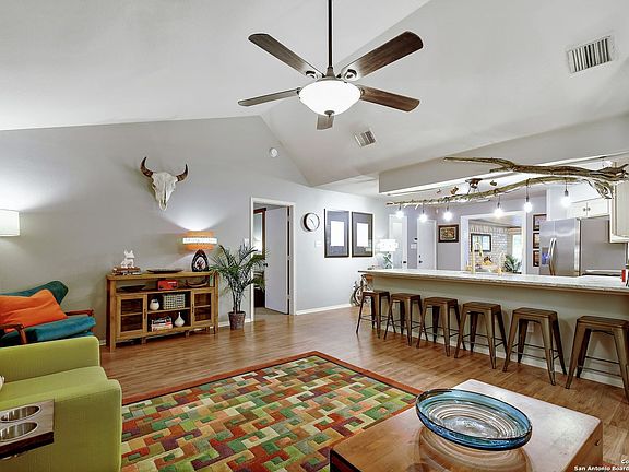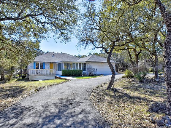 Beautifully Updated 3 Bedroom 2 Bath Home In Cypress Cove, 3 lots combined into one provide a buffer from neighbors on either side, Nestled on a Cu-De-Sac Lot, With Greenbelt Views! You will love the spacious feeling this home provides, inside and out! Featuring an open floor plan with a freshly painted interior, vaulted ceilings, living/dining combo, new flooring and carpet, open kitchen with big breakfast bar, stone countertops, water filter, new stainless steel appliances and decorative lighting, light and bright sunroom addition that is completely finished, with walls of windows, and can be used as formal dining room or second living space. The primary bedroom boasts a full bath with jacuzzi tub and separate shower. Additional updates include a new roof, barn door, crown molding in bedrooms, new kitchen sink, new pantry door, some new light fixtures, HVAC, window unit heat/AC, new integrated smoke alarm system, and extended deck in front and covered porch addition in the back. The lot is full of mature trees providing privacy. Nearby Guadalupe River, Canyon Lake, fishing and boating, and amenities. Book your showing today!