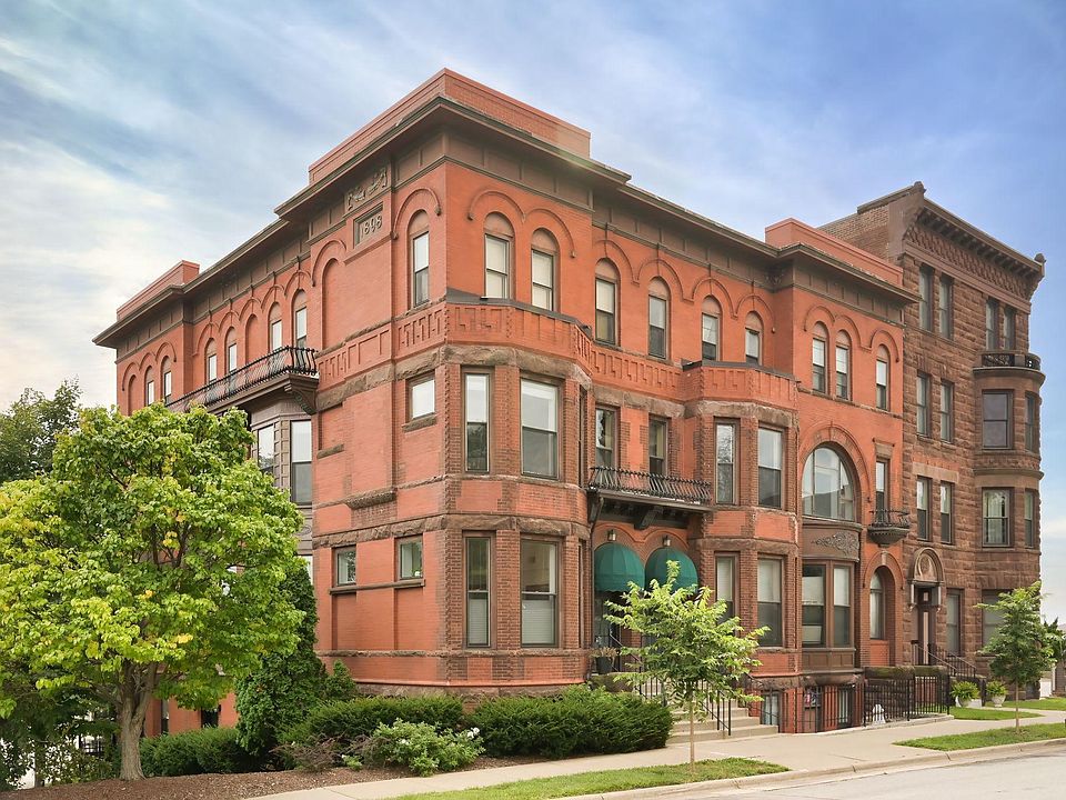 A one-of-a-kind condo with panoramic views of the Cathedral of Saint Paul, State Capitol building, and downtown Saint Paul. An amazing location within walking distance of downtown and Cathedral Hill restaurants and shops, the Xcel Energy Center, and many public transit options. This property has the convenience of being ground level with the privacy and security of a 2nd or 3rd level unit thanks to ample tree coverage and the building’s position on a hill. The solid brick building was constructed in 1898 and has been meticulously maintained with replacement of the roof (2014), south wall and windows (2018-2019), and architectural copper sheet metal cladding (2023). The unit also has a new furnace, smart thermostat, water heater, and humidifier (2024). The look and feel of this property are truly amazing with the historic charm of 11-foot ceilings, oversized windows that flood the unit with natural light, original brick walls, and wood trim throughout and the modern convenience of thoughtful upgrades. The renovated kitchen has been opened up to look into the living and dining room and offers high-end appliances, a large center island, a wine fridge, and a bay window sitting area. The spacious living room has a wood burning fireplace with a built-in gas valve. The renovated bathroom has a beautifully tiled standing shower, separate soaking tub, heated floors, and a sliding door leading to a separate vanity and sink off the primary bedroom. In-unit washer and dryer are also in the bathroom. Both bedrooms are large with excellent storage, including a walk-in closet in the primary bedroom with a custom closet system. The back door leads up to breathtaking 360-degree views of the city from the shared rooftop deck and down to a private storage unit in the basement. A large private garage space is also included and offers an oversized door for larger vehicles, and there is additional building guest parking and free street parking. Don’t miss this bright, beautiful condo with great amenities and easy access to the best Saint Paul has to offer!