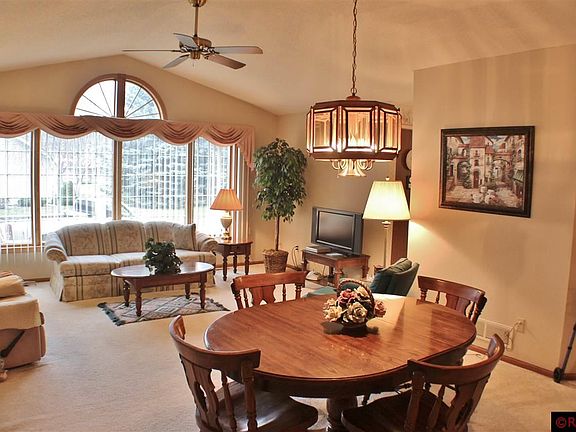 Beautiful setting all nicely landscaped with mature trees & gorgeous fall foliage; 2 bedroom/ 1 full bath & 1 half bath + a den townhome w/ double garage situated on a corner lot with a large well maintained lawn; all 1 level living boasting an open living room & dining room with a very large bay window to bring in lots of sunlight; nice sized kitchen with pantry & eating area plus a built-in desk & cabinets; large master bedroom with adjacent master full bath & walk-in closet; den/office with sliding glass doors leading to a maintenance free deck conveniently located next to the kitchen--beautiful spot to sit & enjoy the backyard & landscaping; den could be a 3rd bedroom w/ addition of a closet; main floor laundry w/ laundry tub--washer & dryer stay; bonus room (33 x 13) in the unfinished basement --great storage area or could be a workshop or craft room; updates include: newer shingles, water heater (2010), gas furnace (4-5 years old); exterior siding is metal trimmed with brick; AN ATTRACTIVE TOWNHOME IN A WONDERFUL LOCATION CLOSE TO SHOPPING, THE MALL, RESTAURANTS, CLINICS & HOSPITAL!