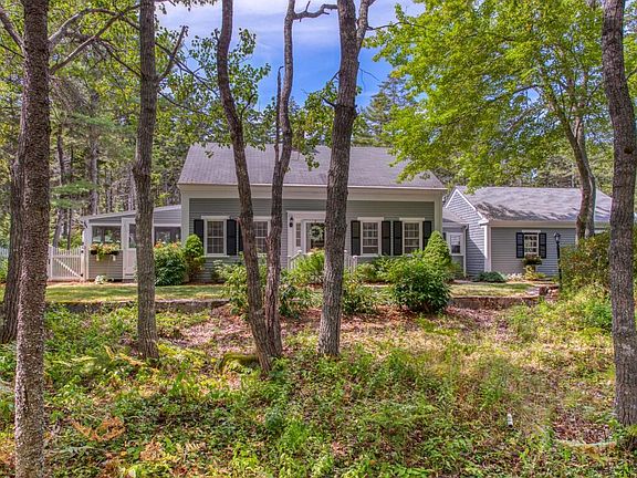 This wonderful New Englander is a perfect blend of old and new. A thoughtfully designed addition was completed in 2007 including a 1st floor primary bedroom and bath, kitchen, open great room with spectacular windows and southerly exposure, and a custom granite fireplace. Wood floors, 2 fireplaces, incredible hardscape all tucked off the road on just over an acre of woods, but close to the beach, general store and school. Significant upgrades in an exquisite setting. One car attached garage with storage and another barn that is perfect for cars, boats or hobbies.