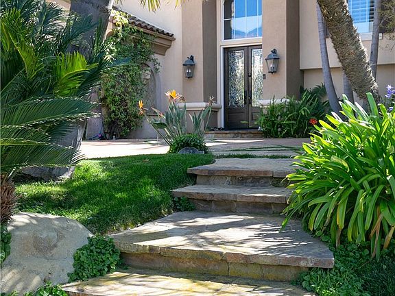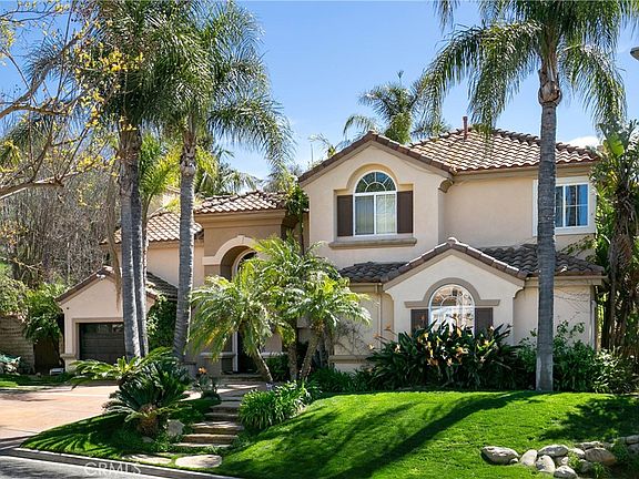 Welcome to this stunning Spanish-style retreat in the highly desirable Wood Ranch community—just minutes from the Reagan Presidential Library and Wood Ranch Country Club. Step through elegant double doors with custom leaded glass into soaring ceilings, sun-drenched formal spaces, and timeless Mediterranean charm. Arched doorways, clerestory and transom windows, and elegant architectural touches create a warm and inviting atmosphere throughout. The open-concept kitchen and family room serve as the heart of the home, showcasing custom maple cabinetry, granite countertops, and stainless steel appliances—perfect for everyday living and effortless entertaining. Originally a three-car garage, the property now features a single-car garage with a beautifully finished ADU conversion in the remaining space. The ADU includes its own private entrance and bathroom, offering an excellent opportunity for guest accommodations, multigenerational living, or additional rental income. The unit is in the process of being permitted, giving the next owner flexibility and potential future value. Upstairs, the spacious primary suite overlooks the backyard and offers a luxurious ensuite with soaking tub, large shower, dual walk-in closets, and a private water closet. Two additional bedrooms and a versatile office/library complete the upper level. A guest suite and powder room are thoughtfully located on the main floor for added convenience. Step outside to your private resort-style backyard featuring a Pebble-Tec pool and spa, built-in BBQ, dining pergola, and lush landscaping. Whether you're lounging poolside or entertaining under the stars, this home offers the best of the Southern California lifestyle.
