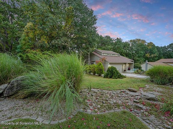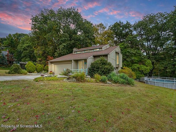 This spacious contemporary home is a unique find in one of South Abington's most desirable neighborhoods. Within the sought-after Abington Heights School District, its unique architecture, vaulted ceilings, and open-concept layout offers both character and versatility for today's lifestyle. Step inside to an airy living room with ceiling heights that amplify space and light. The main level also includes a flexible formal dining room or office that can easily serve as a fourth bedroom if desired. In addition you'll find a family room that flows seamlessly into the open kitchen--perfect for entertaining or casual gatherings. Tile flooring throughout the main living areas adds a clean, modern touch. Upstairs, the primary suite features a built-in California King bed and en suite bath with a walk-in closet. Also a great back balcony porch off the primary where you can enjoy your morning coffee. Two additional bedrooms share a second full bath on this floor. The lower level can easily serve as additional family-living space or a home gym area. A spacious back porch overlooks a wooden walkway which leads to a four-foot deep above-ground pool with vinyl liner, creating a nice retreat for warm-weather enjoyment. Also, this home includes a newer roof (2018) and a radon mitigation system. With a gas fireplace ready for a new insert and chimney liner, this home is primed for personalization. A few ideas and updated fixtures could transform the already contemporary design into a sleek, metropolitan-style showcase. Whether you're looking for flexible spaces, an architecturally unique floor plan, or the chance to put your own finishing touches on a home in a highly desirable neighborhood, this property is a fantastic canvas for creating the lifestyle you envision.