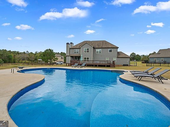 Gorgeous Home with Pool on 1.8 Acres in Dove Field Subdivision Welcome to this stunning better-than-new two-story home in the sought-after Dove Field Subdivision, built in 2017 and perfectly designed for comfort, style, and entertaining. Set on 1.8 beautifully landscaped acres, this home offers the ideal blend of luxury living and serene privacy. Step inside to find hardwood floors throughout, elegant, coffered ceilings, and custom trim work that enhance every space. The chef's kitchen is the centerpiece of the home, featuring a large central island, granite countertops, double ovens, a cooktop, and stainless-steel appliances-all open to the spacious family room for seamless entertaining. The main level offers an inviting open-concept layout with a formal dining room, front office, and a guest/in-law suite complete with a full bath, plus an additional half bath for guests. Upstairs, you'll find a luxurious owner's suite with a private sitting area, a spa-inspired ensuite bath, and generous closet space (TWO). Three additional spacious bedrooms, two full bathrooms ( one jack and jill), and a media room provide plenty of space for family and guests. If you thought that was amazing, that's not all... now time to head outside. Enjoy outdoor living at its best with a covered back porch featuring a cozy outdoor fireplace, an extended patio, and a fenced backyard. The in-ground swimming pool with its own covered metal entertainment patio makes this home a true showstopper for gatherings year-round. The exterior showcases timeless brick and stacked stone accents with Hardie plank siding and a three-car garage for ample parking and storage. This is more than a home-it's a lifestyle. Move-in ready and meticulously maintained, this Dove Field gem offers modern luxury, space, and elegance inside and out.