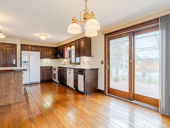 This home is located in the popular Pleasant Hills section of town. Abuts and overlooks the Pleasant Pond. Lovely!! Located just minutes from Higgins Beach, Ferry Beach and Scarborough Beach State Park and offers the convenience of in-town Scarborough, the Maine Mall and downtown Portland. The lower consists of a familyroom with K-1 heater on brick hearth, large bedroom and 1/2 bath laundry(washer and dryer are included) and 2 car heated garage. Upper level offers Livingroom with propane heater on brick hearth; Kitchen/dining area with plank floor, tile counters and backsplash Microwave,; D/W, trash compactor,range and refrigerator, Built-in bar and pantry. The dining area has Atrium type door to 3 level deck and angle bay window.Primary bedroom, two additional bedrooms and full bath complete this level. There are two storage sheds under the deck. Great 1/2 acre lot with split rail fencing, mature trees and shrubs and amazing sunsets!!