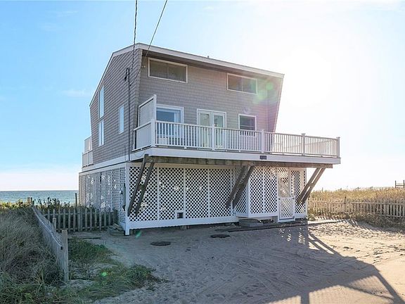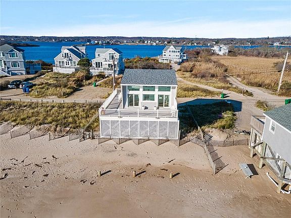 Rare opportunity to have your 3-bedroom oceanfront retreat on Green Hill Beach. Enjoy sunrises and full moonbeams on the ocean with unobstructed views to Block Island from inside and out. Open sliders to wraparound Trex deck for magnificent ocean vistas. On the back deck spectacular sunsets over Green Hill Pond await. Down your steps to the pristine undeveloped Green Hill beach that stretches on for miles to Charlestown Breachway. This is 3rd from last house on an enchanting, dead-end, private, beachfront road. Few like this in all of RI. The interior has been freshly painted and bathroom newly updated. The kitchen is open and has endless ocean views. The 2 bedrooms in the loft offer ocean views from your pillow as you awake. The ceilings are vaulted giving an airy feel. This charming beach front home also has the benefit of municipal water and updated outdoor shower. There's plenty of parking for 4 cars. To the east are vacant, unbuildable beach lots preserving the beach and views. (not included in sale) The home was moved back with new piers and septic in 2008. This is an extraordinary property. These types of ocean front homes on piers are rare, the stuff of dreams, and offer the finest "Salt Life" experience.