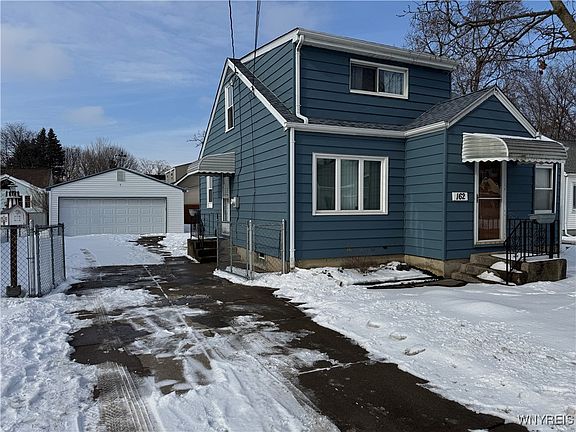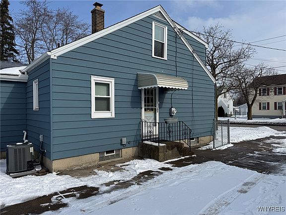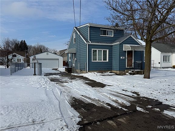 Cozy 4 Bedroom Cape Cod! Pride of ownership throughout since 1955. Fully fenced in yard, screens for 2.5 car garage...great for entertaining! Convenient to the 400, minutes to Harlem Road Park. ~ 1st Floor: Eat in kitchen remodel 2017 w/quartz counters, kitchen appliances 2022. Living room w/oak flooring. Full bath w/tile & whirlpool tub. Family room has new carpeting 2025, toasty gas fireplace, rustic woodwork, bow window, skylights supply ample natural lighting. ~ 2nd Floor: Tons of storage! 2 additional bedrooms. Front bedroom remodel in 2024 with lovely wood flooring. ~ Basement: Glass block windows, laundry & workshop area. ~ Furnace, central air & roof 2018. Newer windows throughout home. Exterior paint 2022. ~ Note: Tax record incorrectly indicates square footage as 1,319. Family Room square footage of 299 is not included. Total square footage should be 1618 as per listing agent measurements.
