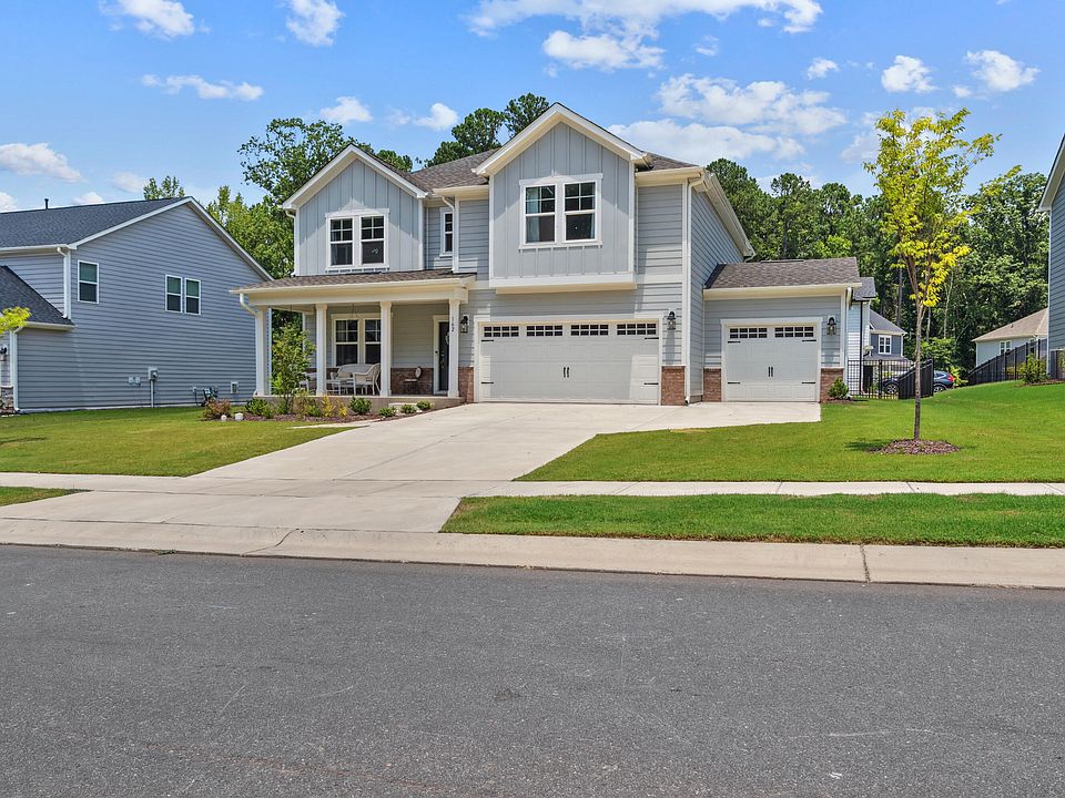 Discover the Bedford Plan in Beautiful Hickory Grove Step into over 3,100 square feet of thoughtfully designed living space in the stunning Bedford plan—crafted for modern lifestyles and effortless entertaining. This model-like home features an open-concept layout that seamlessly connects the gourmet-style kitchen—complete with a gas range—to the expansive gathering room, creating a warm and inviting atmosphere for family and guests alike. A versatile first-floor flex room offers endless possibilities, whether you need a home office, playroom, or guest suite. Upstairs, a spacious loft provides the perfect spot to unwind or connect, while the luxurious owner's suite impresses with a large soaking tub, separate shower, and multiple walk-in closets. Three additional bedrooms ensure everyone has room to call their own. Thoughtful upgrades include a third garage bay, elegant crown molding, trim and wainscoting on the main floor, a cozy fireplace, built-in storage cubbies, a fenced backyard, and garage floor coating. Modern smart home features add convenience and efficiency, including a smart thermostat, Wi-Fi-enabled garage door opener, and LED disc lighting throughout.