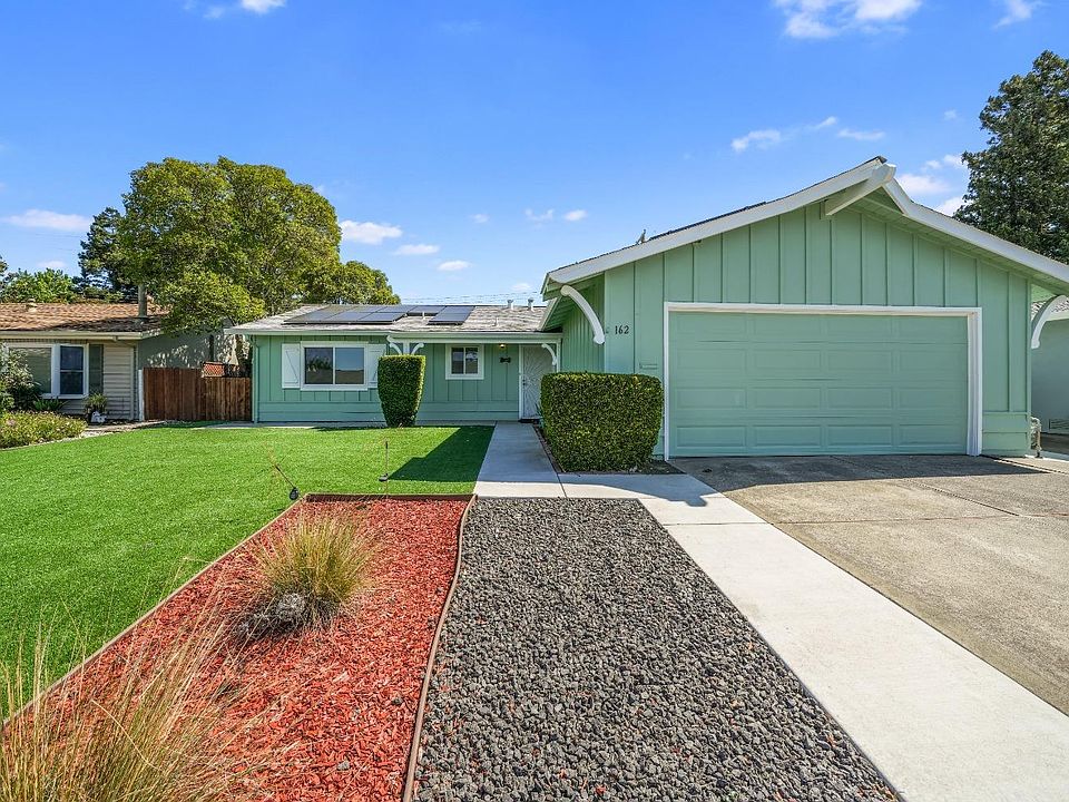 Single story in senior community of Leisure Town. Home offers paid solar with backup battery, makes for very very low PGE bills! Recent upgrades include; refreshed kitchen cabinets, newer appliances, quartz counter tops, windows, blinds, slider, HVAC, Water heater, electrical panel, bathrooms, plumbing, vinyl plank flooring except bedrooms and room off kitchen and more! Artificial turf in front makes for minimal maintenance, and the exterior was recently painted. Leisure Town offers beautiful pools/hot tub, state of art gym and lots of activities! Possible seller concessions too! Close to shopping, restaurants, and freeway access.