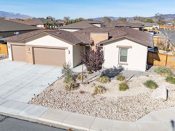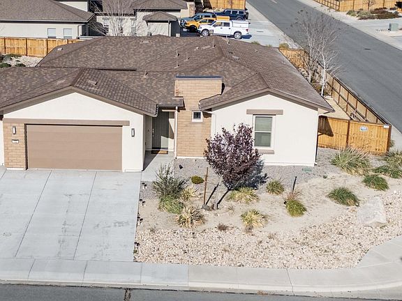 Welcome to your dream home! This beautifully designed residence located in the heart of Fernley, offers the perfect blend of comfort, style, and functionality. Featuring a sprawling great room with cozy fireplace, wide hallways and 10' ceilings, this home is ideal for both relaxing and entertaining guests. Expansive sliding doors bring in natural light, connecting indoor and outdoor living spaces. Granite countertops provide a sleek, durable workspace for all your culinary needs. Spacious bedrooms, with the primary featuring a luxurious walk-in tile shower for a spa-like experience. Covered patios and breezeways offer great space for gatherings or quiet mornings. Don't miss the opportunity to make this exceptional property your new home!