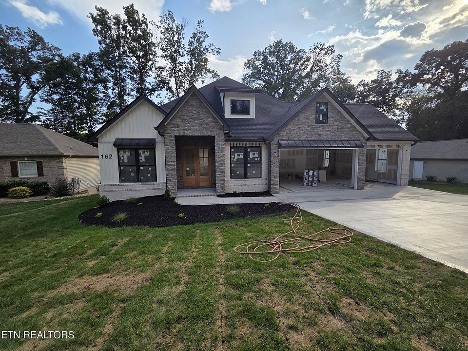 This beautifully crafted home combines modern design with timeless details and will be move-in ready in just three weeks. The exterior features a striking blend of stone, brick, and board-and-batten siding, along with a welcoming covered front porch. A spacious three-car garage, with the third bay extending 31 feet deep, offers plenty of storage and parking flexibility.