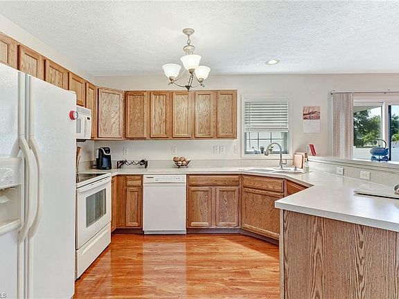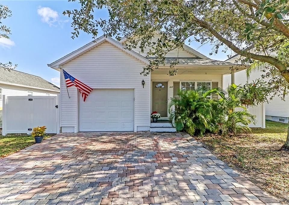 Rarely available single family home in Naples under $225,000 is a perfect starter home or seasonal retreat. This two bedroom two bath home with one car garage features an open concept floor plan and a FENCED back yard. Easy care laminate coated wood flooring throughout. The kitchen offers wood cabinetry, light counter tops and white appliances, with matching light cabinetry and counter tops in the bathrooms. The living area is spacious and open to the dining area and kitchen with lots of natural light. This home boasts a charming front porch area perfect for enjoying your morning coffee and additional outside patio for sunning and entertaining. New AC, new roof, new fence, new master bath shower. This lovely home is approximately six miles from the Naples beach and five miles to downtown shopping and restaurants. Leawood Lakes is a low HOA community with fees only $112/month! Property does not require flood insurance!
