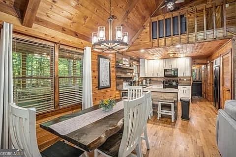 Seller offering concessions of $5,000.00 for closing cost assistance. Fully furnished 3BR/3BA cabin. Recent updates include new roof (2023) & tankless water heater (2024). Open floor plan with granite kitchen, gas log fireplace, hardwood floors, and main-level master suite. Upstairs loft + guest suite. Outdoor living with a hot tub, fire pit & covered porch. No HOA. Minutes to McCaysville, Copperhill, Blue Ridge, and close to the Ocoee River. Move-in ready!