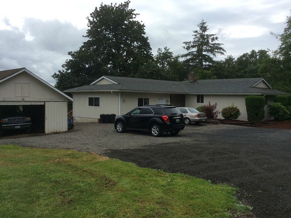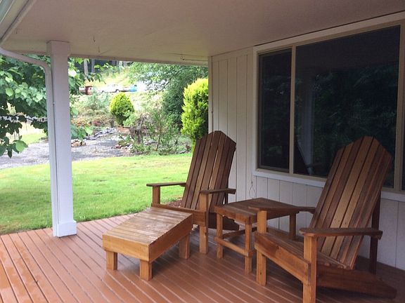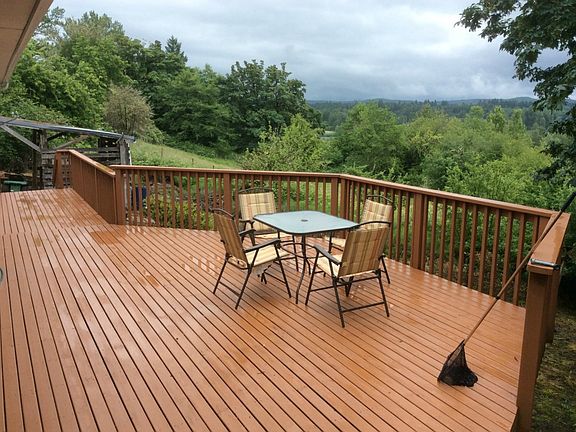 Great view of Mt St. Helens from the deck. Nice three bedroom single level home features a wood burning insert in the oversized living room. Kitchen has plenty of storage place with all appliances staying. Grounds are well groomed and there is an outbuilding for chickens or small animal. Area is very private. Garage has been converted to two rooms but would be very easy to convert back.
