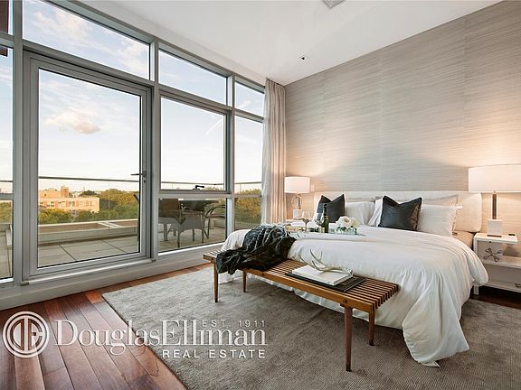 The best Penthouse in Williamsburg, with 2791 square feet of interior/exterior space including three terraces on the main floor and a private rooftop terrace above. This three bedroom loft-like apartment, boasts high ceilings, 360 degree views, and custom control home automation systems. This exquisite penthouse is complemented by gorgeous city views overlooking McCarren Park and a heated salt water pool with a fully landscaped private courtyard. All this in an amenity-rich, full service condominium with very low carrying costs. The open kitchen features Liebherr and Bosch stainless steel appliances, white quartz counters, imported custom European Lineadecor cabinetry and a frosted glass backsplash with recessed lighting. The master bedroom has a large walk-in closet with custom shelving and the master bathroom has floor-to-ceiling white Carrera marble tile, heated Zambrano Negro flooring, double sinks and an oversized glass encased rain shower. The extra large second bathroom has floor-to-ceiling white Carrera marble, a deep Vitabath soaking tub and heated Zambrano Negro flooring. Other features include Brazilian walnut wood floors, double-paned floor-to ceiling tilt and turn windows, custom solar shades, customized pantry, California closets throughout, Miele washer/dryer, internal and an audio/video security intercom. The perfect setting to entertain, socialize or relax in style, this discreet and highly customized oasis is nestled on N. 12th Street between Bedford and Berry, a vibrant Mecca of activity and conveniences. Points of interest in the immediate location include McCarren Park, the Farmer's Market, countless restaurants, boutiques, roof top bars, coffee shops and music venues such as Brooklyn Brewery, Brooklyn Bowl, Brooklyn Winery, The Ides at the Wythe Hotel Rooftop, and Verboten to name a few. The Residences at The Williamsburg offers a menu of world-class hotel amenities to enjoy as well as a part-time doorman, roof top bar, full service pool, work out facility, billiard room, elevator, lounge, roof top terrace, and available housekeeping, valet parking, parking garage, and concierge services.
