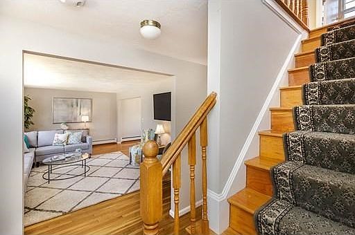 This 3 bedroom, 1.5 bath Garrison Colonial is just a stones throw away from the much desired Brackett School, Menotomy Rocks Park & beautiful Robbins Farm with breathtaking views of the Boston skyline. 1st floor features large living room that opens to formal dining room. Spacious Eat In Kitchen with lots of cabinet space, granite counters & updated appliances. 1st floor half bath conveniently located just off the kitchen. 2nd floor features 3 spacious bedrooms with great closet space & full bath. Large multi-purpose room in lower level perfect for family room, play room, office or guest space has just been finished off with a fresh coat of paint and brand new carpeting. Great access to the large deck in the back yard & in-ground swimming pool perfect for summer entertaining! This home has hardwood floors throughout & interior walls & trim were just painted! A perfect place to call home! Open House, Sat 12-1 and Sun 12-2. Any offers will be reviewed on Tues, April 16th at 10AM.
