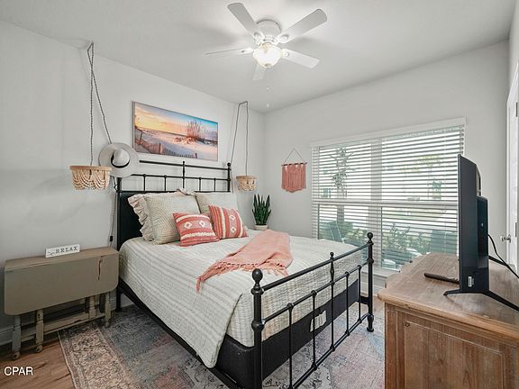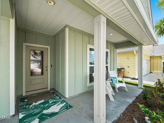 CURRENTLY UNDER CONTRACT, SELLER WILL CONSIDER BACKUP OFFERS. STUNNING 4BD/2BA HOME WITH BAY VIEW IN THE COVETED COMMUNITY OF WINDMARK BEACH! Newly constructed in 2022, this beautiful property offers a spacious and comfortable living environment with a range of desirable features. Luxury vinyl plank flooring along with 9' ceilings extend the entire space creating an open and airy atmosphere. Trey ceilings in the living area & primary suite along with 5'' base molding adds an extra touch of elegance. As you step inside, you'll be greeted by the elegant interior design with high-quality finishes throughout. Granite counters & designer lighting are featured in the kitchen & bathrooms providing both style & durability. White shaker style cabinetry combined with breakfast bar seating, a walk in pantry & stainless steel appliances adds a modern touch. Wake to a water view in the primary suite complete with a walk-in closet, garden tub, separate shower & double vanity. All on one level are three additional bedrooms & a nicely appointed full bath with a shower/tub combination. Connected with Smart Home Technology, enjoy the benefit of the latest IQ Panel with HD touchscreen, Kwikset Smartcode locking system & Smart Thermostat. Moving outside, you'll notice the four-sided Hardie exterior with front entry garage for covered parking & storage. Take in the bay view from the back patio perfect for grilling & cocktails at sunset. A golf cart community all its own, Windmark amenities include a community pool, day docking, bike trail & walking paths. Visit the town center for waterfront dining, mercantile shops & fitness center. Boardwalk beach access leads to white sand pet friendly beaches for shoreline fishing, kayaking & more are all just a short walk away! This unique community is like no other in the area with natural Florida accents from the landscaping to the architectural consistency. In an area with proven rental income, this would make an ideal investment or full time residence. Call today for a showing & tour of the area.