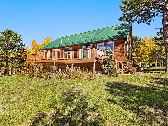 **Interior Pics Coming Soon!** Experience breathtaking 360-degree views of Pikes Peak and the Collegiate Range from this beautiful mountain retreat. Nestled in its own private aspen grove on 2.33 fully fenced acres, this property offers both serenity and convenience—just a short distance from the Teller Markets and US-24. The home features a bright, open-concept main level with vaulted ceilings, hardwood floors, and expansive windows that showcase the stunning scenery. Step outside from either the living room or the primary bedroom onto a spacious Trex deck perfect for entertaining, grilling, or simply enjoying the brilliant fall colors and unforgettable sunsets. The kitchen offers stainless steel appliances and tile counters! The primary suite includes a luxurious 5-piece bathroom with a generous soaking tub. Stay cozy all winter long with a gas stove on both the upper and lower level. Downstairs, you will also find two spacious bedrooms, a full bath, and direct access to the beautiful backyard. A metal roof adds durability and peace of mind for mountain living. Additional highlights include an attached 2-car garage, a detached oversized 2-car garage with attic storage and workshop space, wiring for a hot tub, and horse-friendly zoning with no HOA!