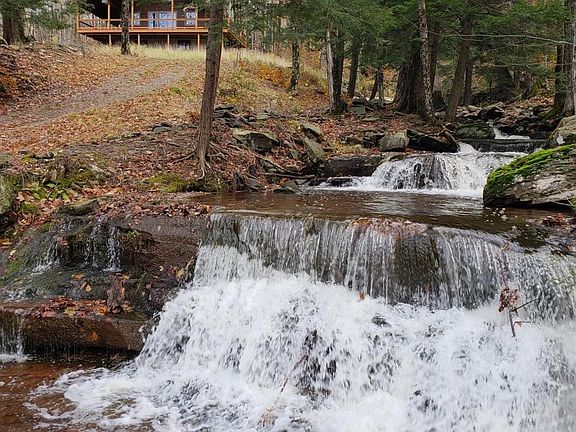 Nestled in the serene hamlet of Maplecrest, down a long private road, lies a hidden streamside oasis that offers the quintessential setting for your upstate retreat. This charming cabin peacefully situated beside a stream, a cascading waterfall, and year-round breathtaking mountain views. The property adjoins thousands of acres of protected forest, making it an ideal haven for hunters, outdoor enthusiasts, those looking to create an ideal vacation rental property, and anyone seeking a tranquil escape. Should you desire even more land, there is an opportunity to purchase a contiguous 10 acres for an additional $225,000. The cabin is a total of 1,849 square feet and partially finished, providing a blank canvas for the new owner. It is weather-tight and well advanced in the construction process, featuring framed rooms, spray foam insulation, roughed-in plumbing, electrical wiring, Andersen windows, a vaulted ceiling, and a stunning wall of glass that frames the mountain vista. Additionally, a covered wrap-around deck enhances the appeal of this future retreat. Underground electric and fiber optic lines have already been run on the road. Unknown size or condition of the septic tank. Buyer to confirm. The new owner has the option to bring their own builder to complete the project or can be introduced to our preferred builder. Conveniently located just 15 minutes from the Hunter and Windham ski resorts, this property is also minutes away from designated hiking trails throughout the Blackhead, Black Dome, and Thomas Cole Mountains, as well as CD Lane Park which offers swimming holes, non-motorized boating, fishing, basketball, trails, and more.. Whether you envision a secluded weekend getaway, a unique vacation rental retreat, or a paradise for nature lovers, this unique property promises a setting like no other. Don't miss this opportunity to create your own mountain hideaway! 3D Virtual Walkthrough and Floor Plans Available.