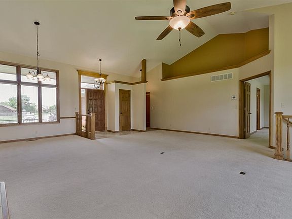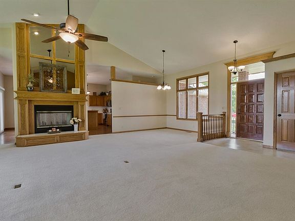 You will not want to miss out on the Beautiful custom built, one owner home located in Rainbow Lakes. Gorgeous lake lot with a beautiful view from your covered deck. This 4 bedroom 3 bath home features over 1,900 sq ft. on the main floor with vaulted ceilings and a open concept with a formal living/dining room space great for entertaining! Two sided fireplace with hearth is the focal point of this room! You will love all the natural light throughout the home and a great view from any room! Kitchen features new stainless steel Range oven, microwave and dishwasher, new hardware and light fixtures....under and above counter lighting, hardwood floors and fireplace in the hearth/dining area. Floor plan is a Split bedroom concept- Large Master suite with a great view, master bath with soaker tub and separate shower and double vanities, and walk-in closet. Separate main floor laundry room with wash sink and plenty of storage. Basement features walk out, view out. Large family room with fireplace, wet bar and two additional bedrooms. 5th bedroom could be finished out if needed or can be used as extra storage. Call for a showing today!