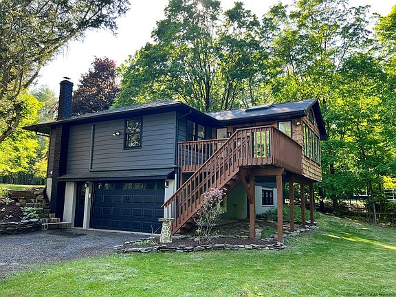 Beautiful, renovated 3 bedroom, 2 bathrooms home set on 1.56 acres near the end of a lovely peaceful dead-end road. Walk into a sunny living area, dining and kitchen with stainless steal appliances, wine cooler, and quartz on countertops, backsplash and waterfall island. Through the kitchen you will find a sunroom with skylights and high ceilings and a deck facing the big backyard with lovely mature trees. Oak hardwood floors throughout the main level where the primary room with its private bathroom and 2 more bedroom and a guest bathroom stands. On the lower level you will enjoy a huge family room with a brick wood burning fireplace, laundry area and a large 2 car garage. Come and see this beauty for yourself.
