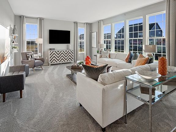 The spacious and modernly designed Bluestone includes 4 bedrooms, 2.5 baths, first-floor study, basement and a 3-car garage. The 2-story foyer leads to a private study that overlooks the covered front porch, and a formal dining room that connects to the kitchen. The kitchen features a pantry, Aristokraft cabinetry, GE stainless steel appliances, an over-sized island designed with a sink and overhang for barstool seating; breakfast dining area sits open to the kitchen and family room. The second floor is home to a beautiful owner's suite with private bath and over-sized walk-in closet. The three additional spacious bedrooms are centrally located around the second full bathroom and upstairs laundry room and linen closet. Best of all, enjoy comfort in knowing we guarantee superior quality that is backed by a 10-year structural warranty. Pictures are of onsite model home and representational of available options and upgrades. Incentives tied to using Lennar Mortgage. Ask Associate for details.