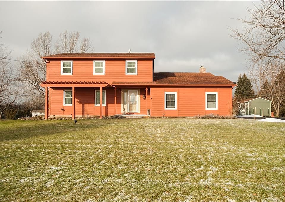 WOW! WHAT A BEAUTY! DYNAMITE COLONIAL TUCKED AWAY ON A PRIVATE DRIVE WITH A PARK LIKE BACKYARD AND GORGEOUS MANICURED GARDENS, FIRE PIT, DECK AND PATIO BACKING TO ONE OF THE BEST COMMUNITIES IN MENDON! MOVE RIGHT IN TO THIS GEM WITH GLEAMING HARDWOODS AND A FANTASTIC FLOOR PLAN! CORIAN KITCHEN OPENS TO FAMILY ROOM WITH CATHEDRAL CEILING AND FIREPLACE! MASTER BEDROOM AND BATH! UPDATES SINCE PURCHASE INCLUDE: CORIAN COUNTERS, FIREPLACE, APPLIANCES, DRIVEWAY AND LANDSCAPING! FULL HOME WARRANTY INCLUDED! THIS HOME HAS IT ALL - STYLE, COMFORT AND TODAY'S AMENITIES! HURRY TO CALL THIS ONE HOME!