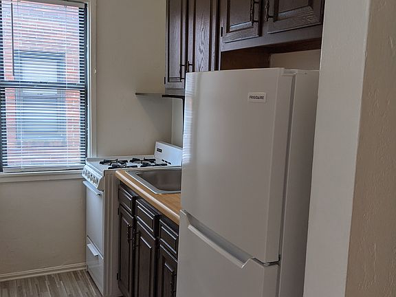 The apartments offer large closets, equipped kitchens with a refrigerator and stove.