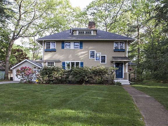 Adorable 3-4BR Colonial with a Craftsman influence hits all the right notes for families wanting to put down roots in the heart of Waban. Truly move-in condition! And opportunity for those who would expand or build a substantially larger home on this 14,930sf lot. Character of the times shines through in the mill-work, sizable fireplace & hearth, hardwoods and easy flow among rooms. Welcoming living room centered around the fireplace is notable for its beamed ceiling & deeply set window box with built-in bench and large windows. Eat-in kitchen is updated, dining room spacious and sunny w/ glass sliders to the deck, curved bluestone patio, deep backyard, and 2-car garage. Sunny family room addition with outdoor access and shelving for the most avid reader. Upstairs are a front-to-back master w/ updated bath, 2 sizable BRS, a granite/glass family bath, and smaller 4th BR/office. New AC, systems well-maintained. Close to Waban Square market, shops, MBTA, Angier, Windsor Club, highways.