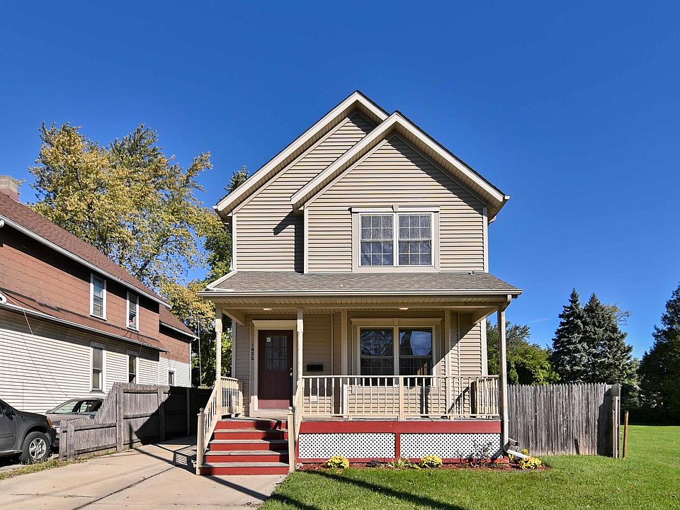 Move-In Ready! 3 bedroom, 1.5 bathroom home on a great block with the best long time neighbors! Freshly painted and cleaned! Newer laminate flooring throughout the living room and dining room. Spacious kitchen with oak cabinets, pantry, ceramic tile, and huge patio doors that lead out to the backyard deck!! Second floor features 3 bedrooms and a Jack n Jill bathroom with a double vanity sink. Unfinished DRY basement ready for your finishing touches, stubbed for a bathroom! 2.5 car detached garage with a nice wide driveway and deep backyard with deck and privacy fence, great for BBQ's. Great covered front porch! Walking distance to Boys & Girls Club of Kenosha, Lake Michigan, and Downtown Shops & Restaurants!