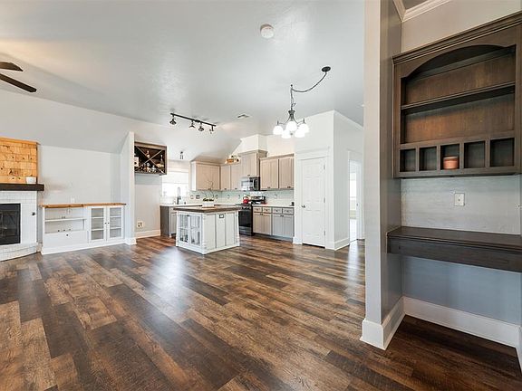 Out back, you’ll find a generous extended decked patio with a pergola—ideal for summer evenings or weekend gatherings. A storage shed provides extra functionality, and the in-ground storm shelter offers added security during Oklahoma’s storm season.